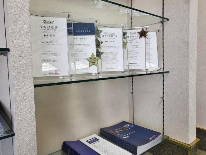 商工センター店(広島総合卸センター内)には、EXキーパー資格3名、キーパーコーティング技術1級資格者4名、キーパーコーティング技術2級資格者4名が在席しております。