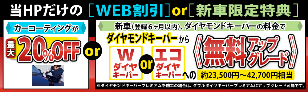 ※キーパー施工車限定 ※キーパーコーティングとの同時施工メニューではないため、WEB割引の対象外となります。